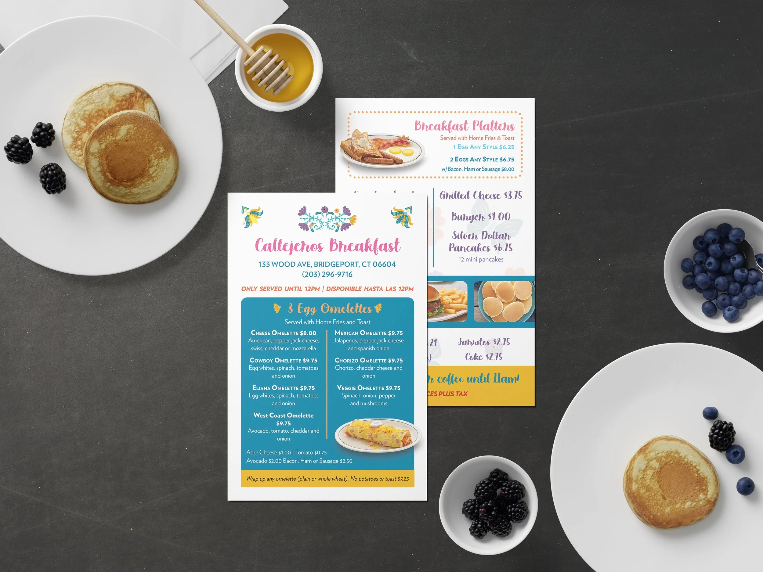 Callejeros, is a local business in Bridgeport, CT where they serve authentic Mexican food. Their restaurant is small, cozy, and full of vibrant colors, which I tried to capture in the design to reflect its warm, inviting atmosphere.